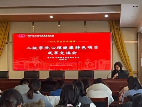 为贯彻教育部《全面加强和改进新时代学生心理健康工作专项行动计划(2023-2025年)》等文件精神,提高学院心理健康教育工作水平,全面落实立德树人根本任务,12月20日下午,我校二级学院心理健康特色项目成果交流会在办公楼第二会议室举行。学校党委委员、副校长王新程,学工处处长王岩,心理健康教育指导中心主任逄霞及各学院党总支副书记出席会议,各学院辅导员参加会议。会议由学工处处长王岩主持。