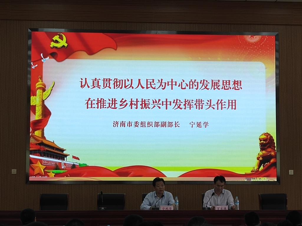 济南市开班式由丁家德副校长主持,济南市委组织部副部长宁延学同志为学员讲了题为《认真贯彻以人民为中心的发展思想 在推进乡村振兴中发挥带头作用》的第一堂党课。