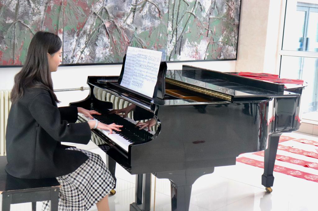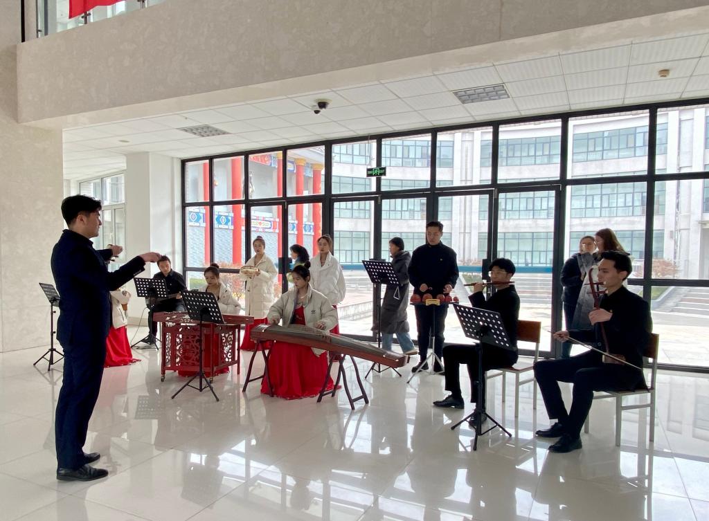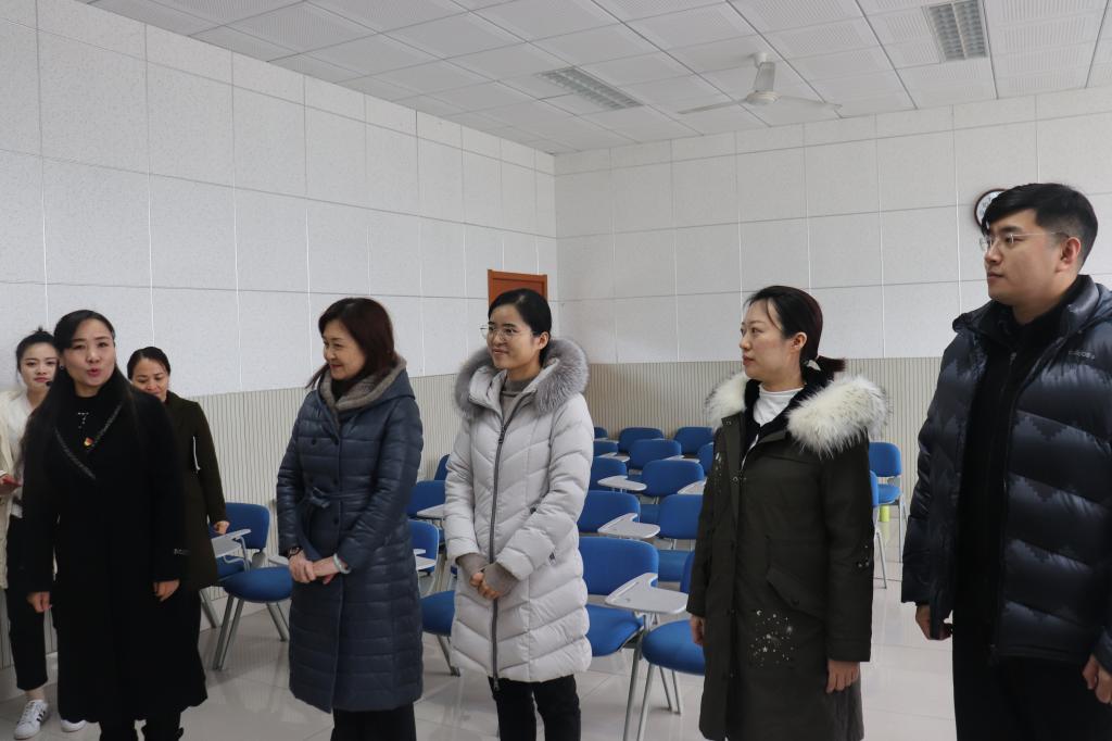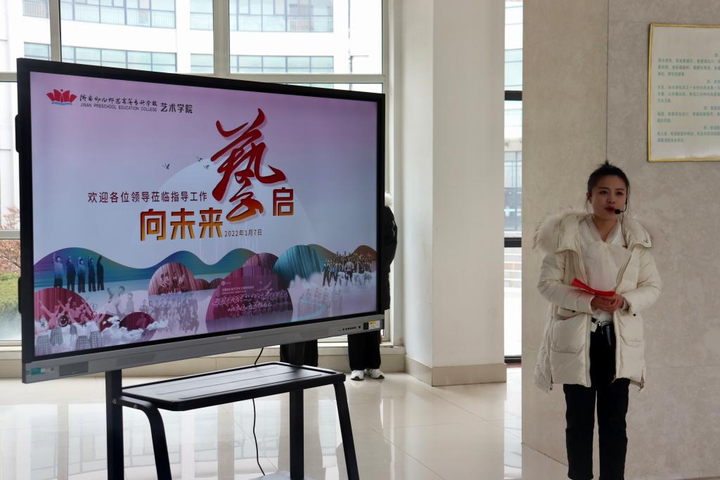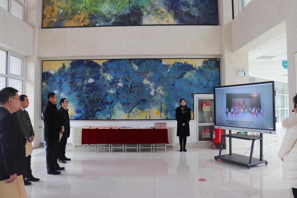 考核评议现场以“艺启向未来”为主题对学院开展的党建组织活动和艺术技能取得的成果进行展示。青年党员教师徐子婷作为本次考核主讲人,从自身经历出发,讲述如何融入艺术学院大家庭,感受党组织给予的温暖,同时见证了学院的发展。随后,邀请校领导观看学院制作的工作短片,查阅党建工作档案及党员学习记录本等材料。聆听了学生支部书记孔令浩然组织的“五十弦”民乐团的现场演奏及青年教师张丽君弹奏的音乐剧《尽善尽美》片尾曲。民乐团是融合思政教育与学生素质成长于一体的活动形式,是发挥党建带团建和专业促成长的重要载体。教师第四党支部书记郭健老师带领学生现场进行书法展示。紧接着,校领导欣赏了艺术设计、美术教育专业同学的服装设计、沂蒙革命老区写生作品。随后,走进声乐教室,与正在开展支部活动的教师一支部老师进行交流。