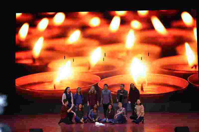 演出中,我校师生精心准备的民族舞、古筝、吟诵等节目和那托马斯学校师生的歌舞节目轮番上演,现场观众不断为演出师生鼓掌喝彩,最后,演出在那托马斯学校的歌舞《鼓》中结束,现场观看演出的接待家庭特意为两校师生献上鲜花祝贺,现场师生深情相拥,近一周的近距离接触交流让美国师生感受到了我校全体教职工的热情与友爱。