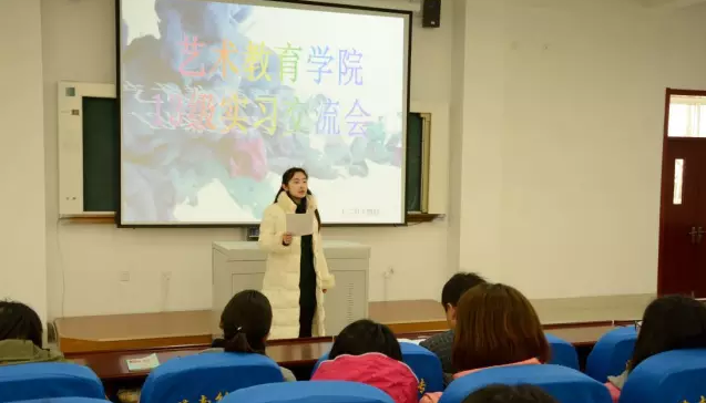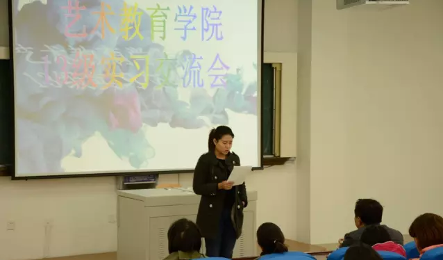 2015年12月14日中午,艺术教育学院全体美术、音乐教育专业学生参加了13级实习总结交流会。会议由学院学生会主席赵亚文同学主持。 截止 2015 年 11 月 27日赴地方小学实习六周的一三级学生顺利返校后,我院2013级约百名学生圆满结束在各所学校实习单位的实习实践工作,满载实习经验顺利归来。每位代表都围绕此次见习都发表了自己的感想