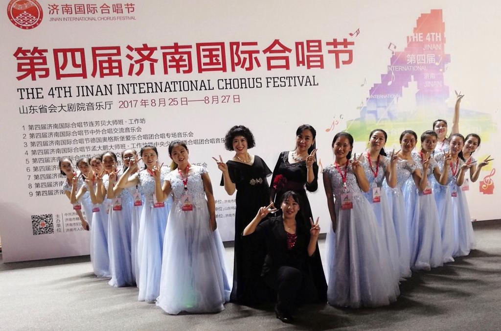 艺飞舞合唱团由艺术教育学院时霞老师指导并指挥,王文老师钢琴伴奏。此次参赛曲目为《come to the music》、《想你的365天》。8月27号晚,合唱团受邀参加了第四届济南国际合唱节闭幕式音乐会。