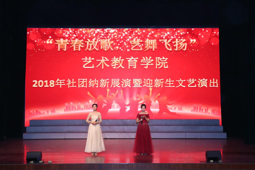 2018年10月12日12:30,由艺术教育学院各社团策划组织的艺术教育学院迎新生暨社团纳新展演活动在艺术楼演播厅举行,艺术教育学院院长尹建文、党总支副书记陈玲玲,衣文副院长、学工办主任孔令浩然、辅导员老师与艺术教育学院全体学生共同观看了本次展演。