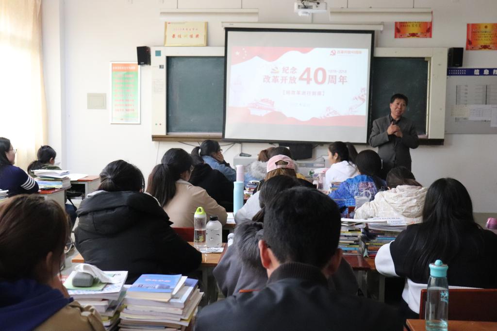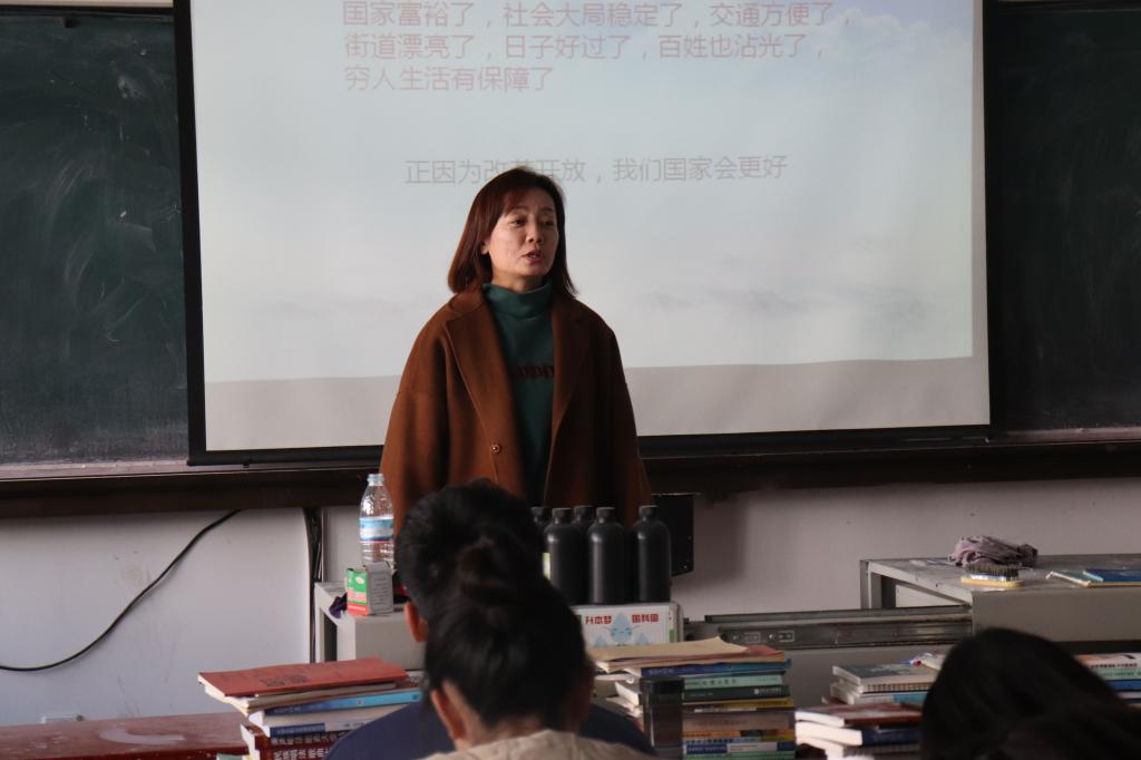 班会活动中,各班班主任与同学们积极参与。介绍改革开放的历史,共同感受中国改革开放第一村“小岗村”,从“和谐号”到“复兴号等故事。让同学们对改革开放有了更深刻的了解,最后大家一起畅想祖国的未来,感受祖国的强大。班会内容丰富、主题明确,通过多种形式让同学们了解改革开放的历史进程,同学们谈看法,说见解,踊跃发言,班会气氛活跃有序。