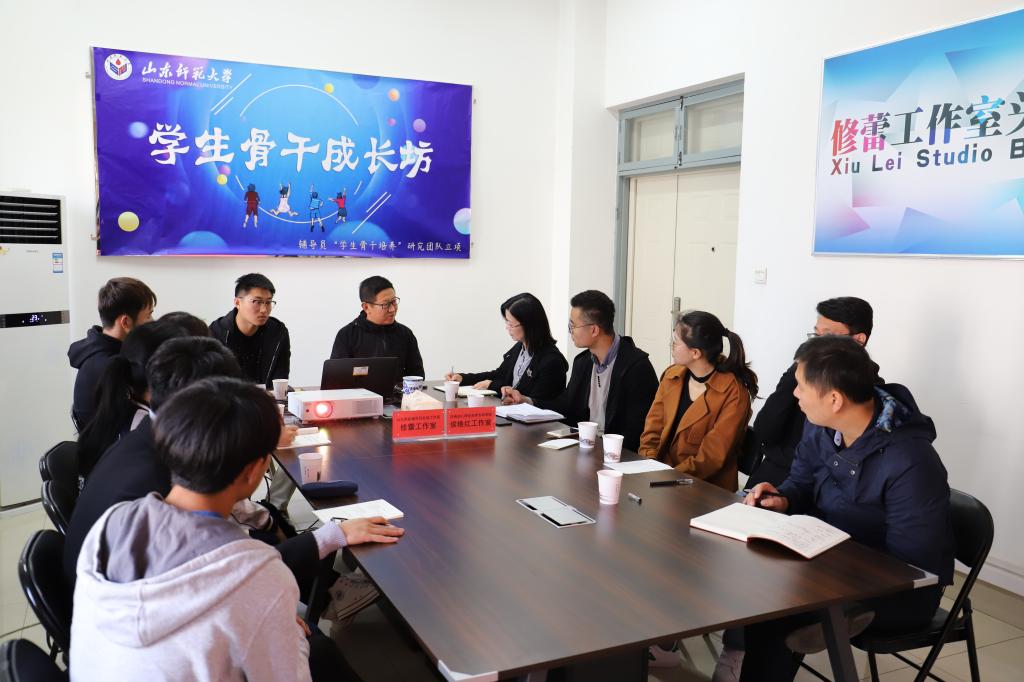 为进一步提升大学生社团建设工作室的工作能力和水平,推进工作室建设的步伐,2018年11月2日,工作室核心成员及学生会社团部同学一行12人在侯艳红的前往山东师范大学修蕾工作室考察学习。
