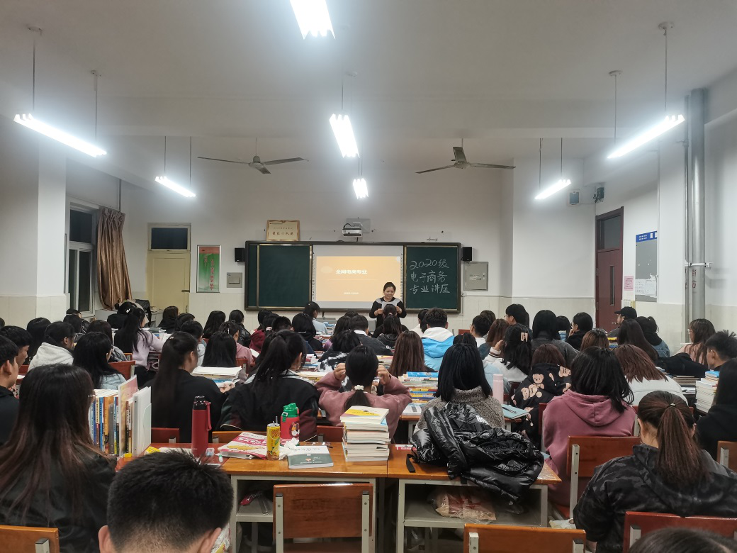 10月28日,我校职业教育学院会计专业、校企合作的互联网金融、大数据技术与应用、电子商务和市场营销专业举办了专业讲座。4位企业专业负责人郑科宇、钟俊飞、范志霞和李铭从专业演进、发展方向、专业领域人才需求趋势、就业岗位和企业办学实力等方面给学生做了专业介绍。我校专业负责人张水莉、吴兴文、王桂东和马丽老师对专业管理、专业教学、学习方法和“1+X”证书等做了介绍,强调了教育部“取消毕业前补考等‘清考’行为”的规定,要求学生不得因为专升本而影响正常的专业学习,对三年的教学时间安排做了说明,前4个学期在校学习,第5学期为企业训练,第6学期为顶岗实习。