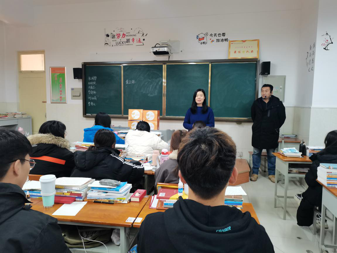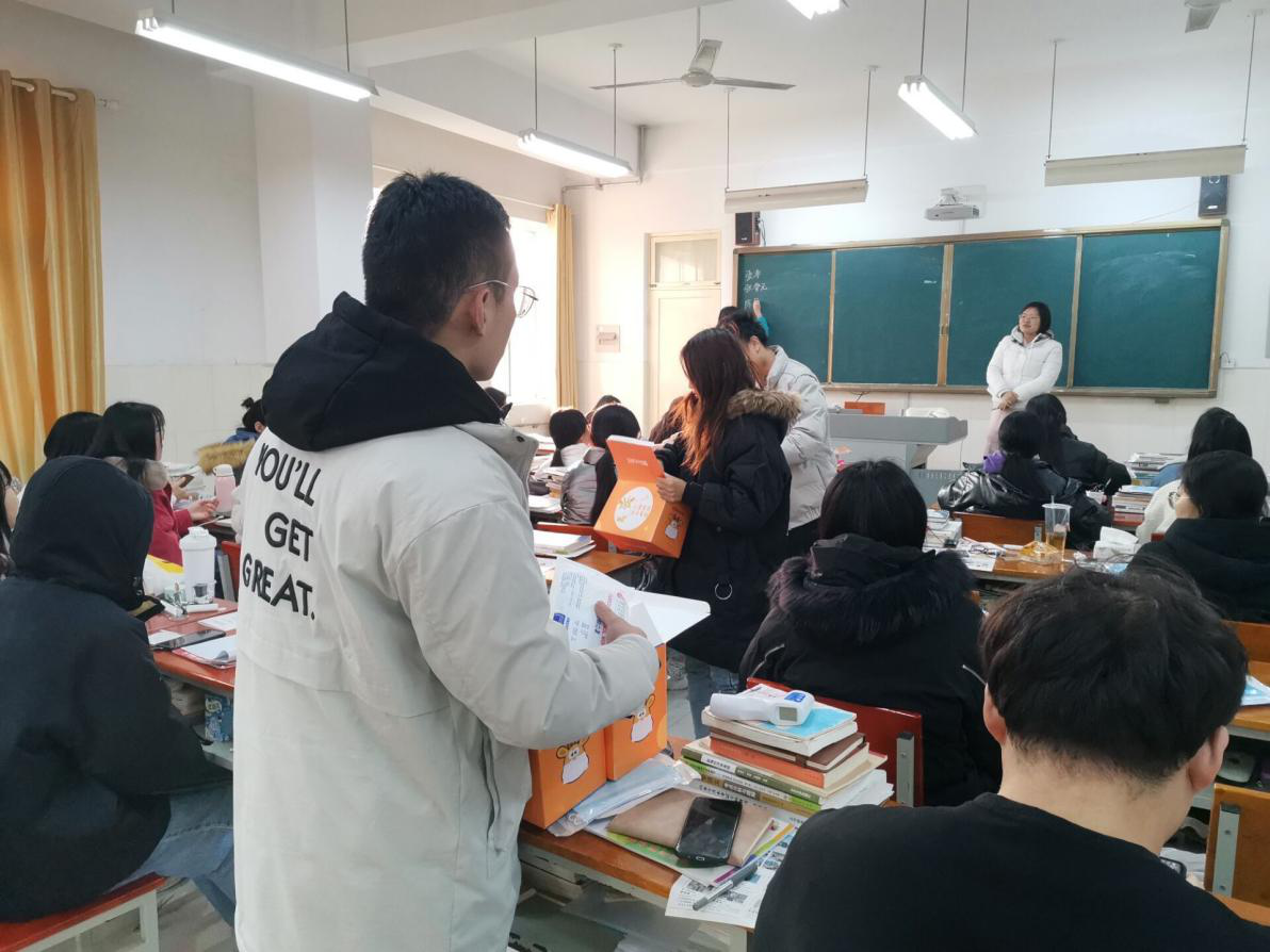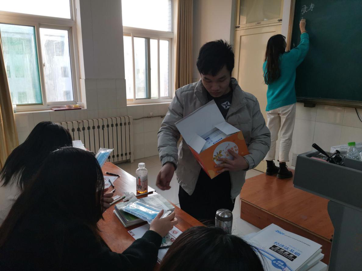 捐赠过程中,院党总支副书记侯艳红对慧科集团的善举和高度的社会责任感,表达高度的赞誉和诚挚的谢意。随后,侯书记亲自来到校企合作班,为同学发放防疫口罩,并叮嘱学生注意保暖,以防感冒。