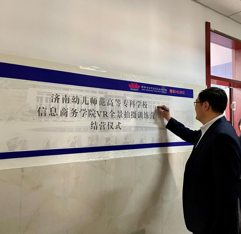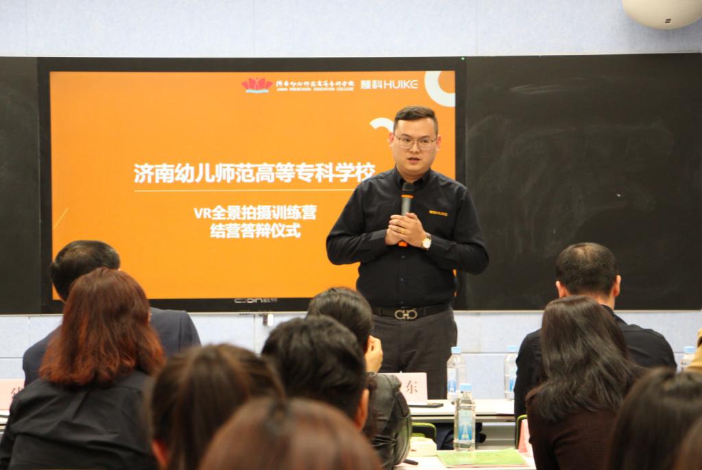 4月16日下午2:50,在我校实验楼214智慧教室举行了济南幼儿师范高等专科学校VR全景拍摄训练营结营答辩仪式。出席人员有济南幼儿师范高等专科学校党委副书记、校长李海平,党委委员、副校长崔建,教务处处长范喜庆,质量管理处处长张成强,信息商务学院院长赵红艳,党总支书记侯艳红,副院长席素梅,副院长宋济明;慧科集团副总裁徐功东,VR与新设计教研中心总经理肖尧,环海区运营总监吴浩贞,山东区总经理孙新宇,山东校区运营负责人范志霞,VR与新设计教研中心资深讲师朱君、陈国峰,山东区虚拟现实专业负责人肖英帅等。慧科集团葛庆凤主持仪式。