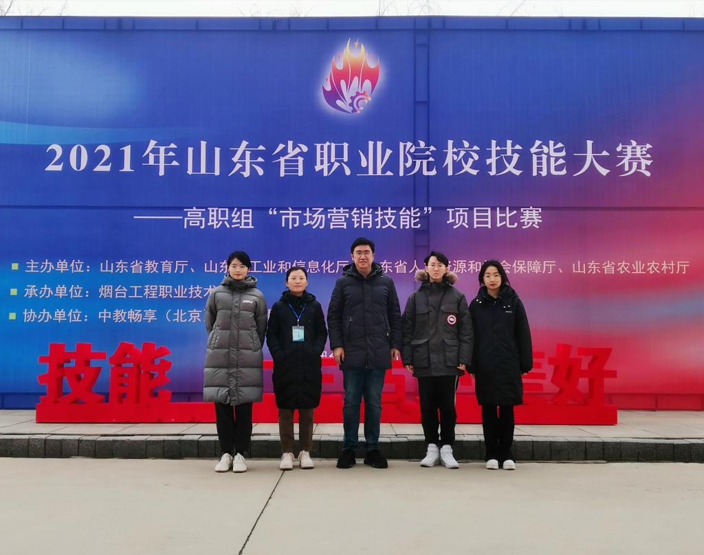 12月21日至23日,2021年山东省职业院校技能大赛(高职组)“市场营销”赛项在烟台工程职业技术学院举行,该赛项已举办八年,竞争激烈。我院王桂东老师带队,王桂东、宋春蕾老师指导的,由王彩霞、李小桐、高杨、朱淑彤组成的团队,经过认真准备、沉着应战,最终在52支参赛队伍中获得第18名,其中沙盘部分取得第一名,最终荣获山东省三等奖。