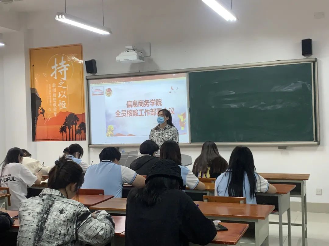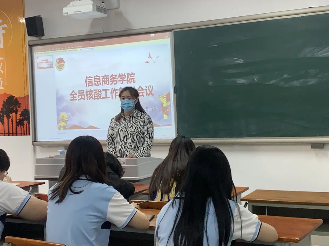 5月15日晚上6点,我院辅导员张贵珍在实验楼325主持召开了全员核酸检测工作部署会议,学院青年志愿者团队总负责人、各小组长及班级全员核酸检测负责人参加。会上,张老师对本轮全员核酸检测时间、地点、要求做了详细介绍,并对本轮学生核酸检测做了详细部署安排,明确任务要求,细化人员安排、物资保障、人员对接等工作,要求各班级充分做好前期安排,做好舆情引导,做到有序入场、有序离场,后期填写好花名册,对未做核酸的同学落实好原因并在花名册中备注,务必确保应做尽做!