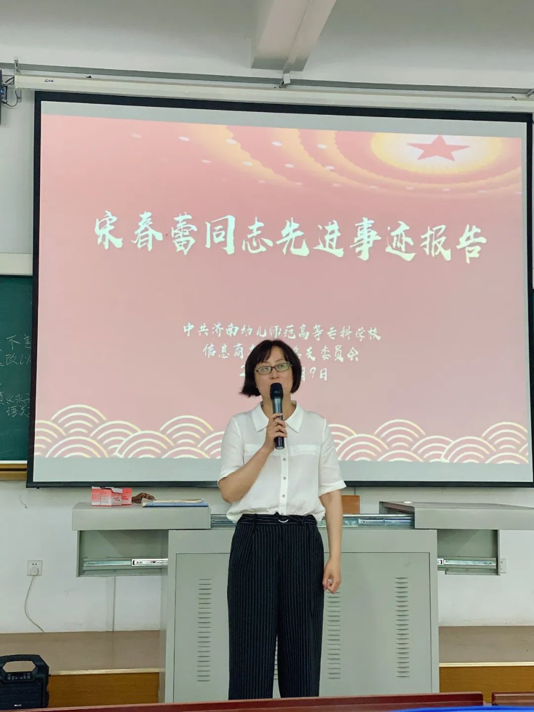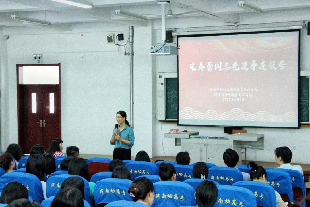 随后,侯书记特邀我院见义勇为的英雄教师宋春蕾作了先进事迹报告会。宋老师用平实的语言、生动的事例、真挚的情感分享了自己英勇救人的过程和场景、当时的所思所想以及自己日常参加公益活动的经历。宋老师的发言情真意切、生动精彩,事迹感人至深,赢得了在场人员的阵阵掌声。