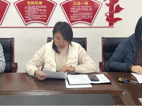 会议第二阶段,由两位党支部书记依次就2023年度基层党建工作情况进行现场述职,教师支部和学生支部分别从主要做法和成效、存在的问题、下一步打算等方面进行汇报。党总支书记朱英华同志对述职情况进行逐一点评。既肯定取得的成绩,又点明了存在的问题和不足,明确了下一步的工作目标。
