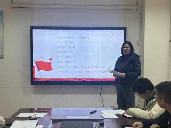 会议最后,党总支书记朱英华同志总结讲话。朱书记指出,信息商务学院要进一步落实“1131”党建工作模式,贯彻学校第二次党代会精神,发挥信息商务学院的办学特色,持续做好“信·廉”文化教育宣传工作,树立心理育人品牌,持续打造信息商务学院自己的党建品牌。各党支部要聚焦解决难点、堵点和痛点问题上,尤其要抓好就业,抓好教学科研等重点工作。进一步巩固成效,抓实整改,形成常态,在谋求学院高质量发展上作出更多的努力。