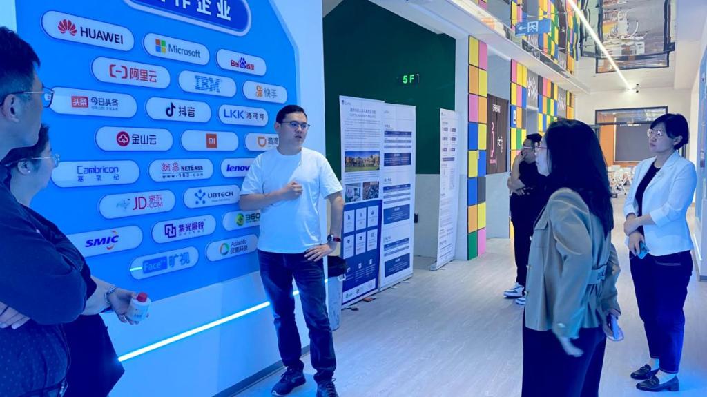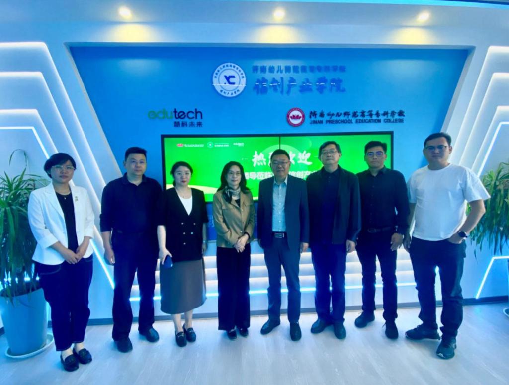 随后代表团在慧科未来(山东)总裁徐功东的陪同下,参观了慧科信创产业学院生产型公共实训基地,向代表团介绍了慧科集团与济南幼儿师范高等专科学校从联合共建慧科信息商务产业学院,打造以企业为主导的产业学院,到双方继续深化创新人才培养模式。代表团产业学院生产型公共实训基地完善的教学设施、功能齐全的创客环境、教学和科研方面取得的成就表示赞赏。