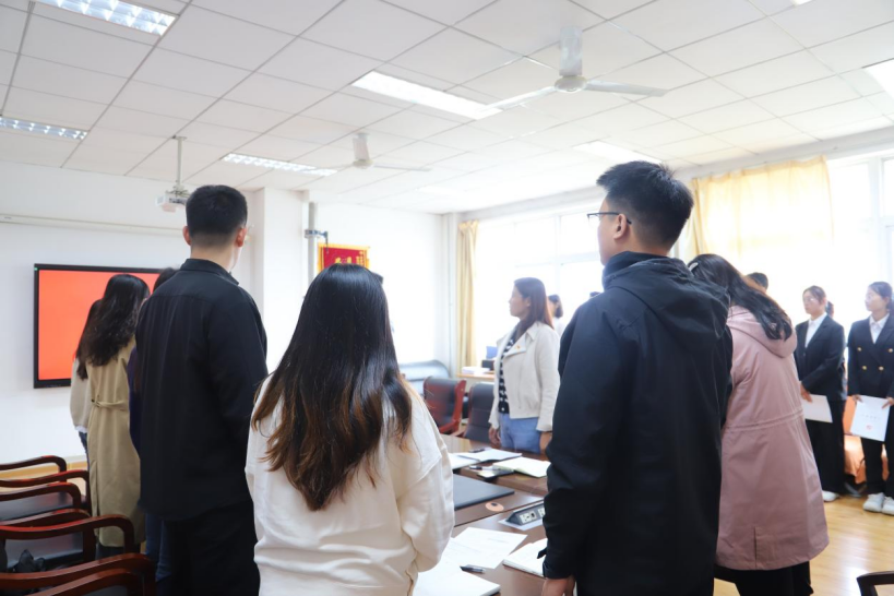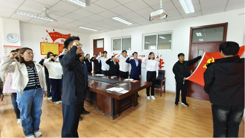 新接收的预备党员们上台表态,他们表达了加入党组织后的激动心情和对末来学习工作的承诺。接着全体党员及预备党员在支部学习宣传委员武历洋的领誓下进行入党宣誓。