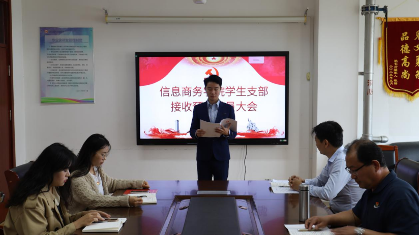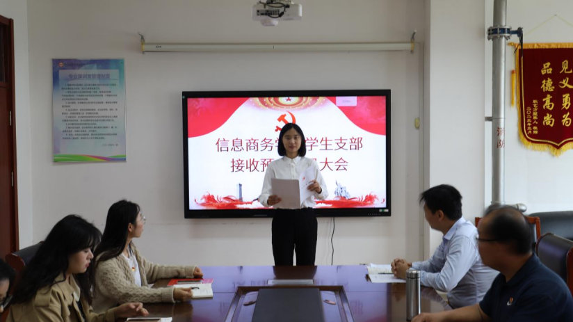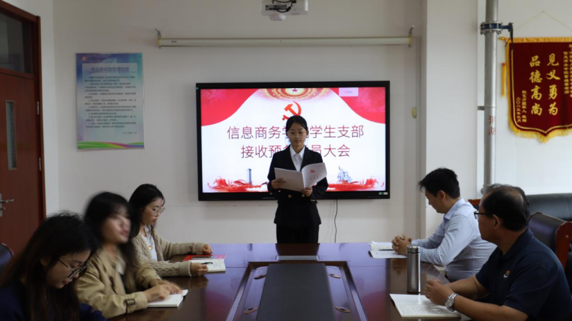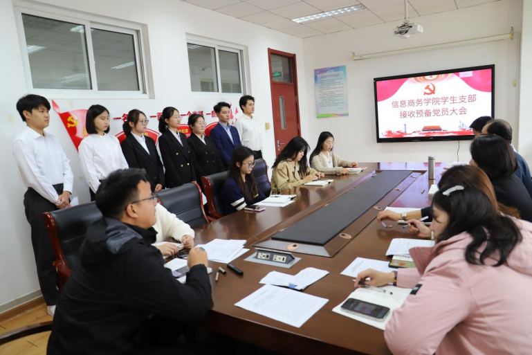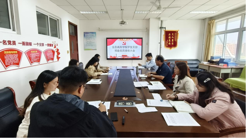 2024年10月29日上午,信息商务学院在实验楼409会议室成功召开了学生党支部接收预备党员大会。会议严格按照《中国共产党党员发展工作细则》规定程序进行。本次大会旨在为党组织注入新鲜血液,壮大党员队伍,进一步加强学生党支部的建设。会议由学生党支部书记成立娟主持,学生党支部全体党员、发展对象参加了此次会议。