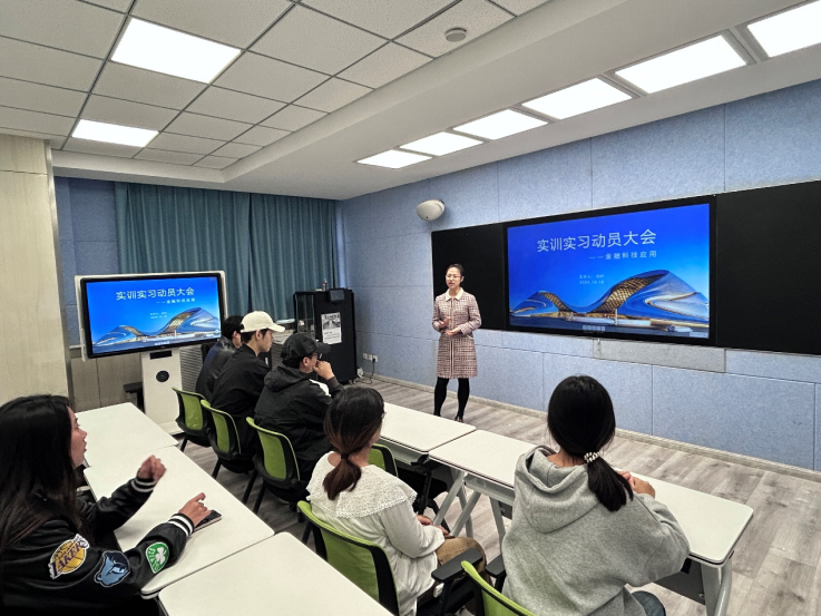 2024年10月28日,信息商务学院2022级金融科技应用专业学生的实习动员大会在实验楼214智慧实验室举行。此次大会旨在激发学生的实习热情,明确实习目标,并为即将踏入社会的同学们提供宝贵的指导和建议。