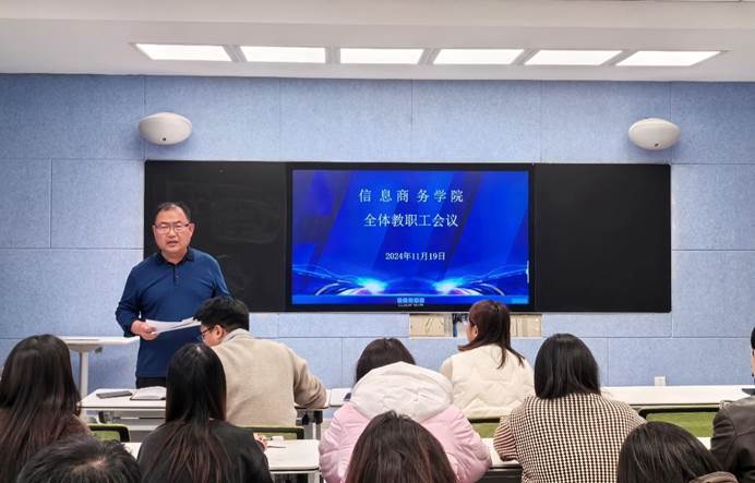 11月19日,信息商务学院在学院会议室举办全体教职工大会。此次大会由学院党总支书记朱英华主持,部署学院近期的重要工作。