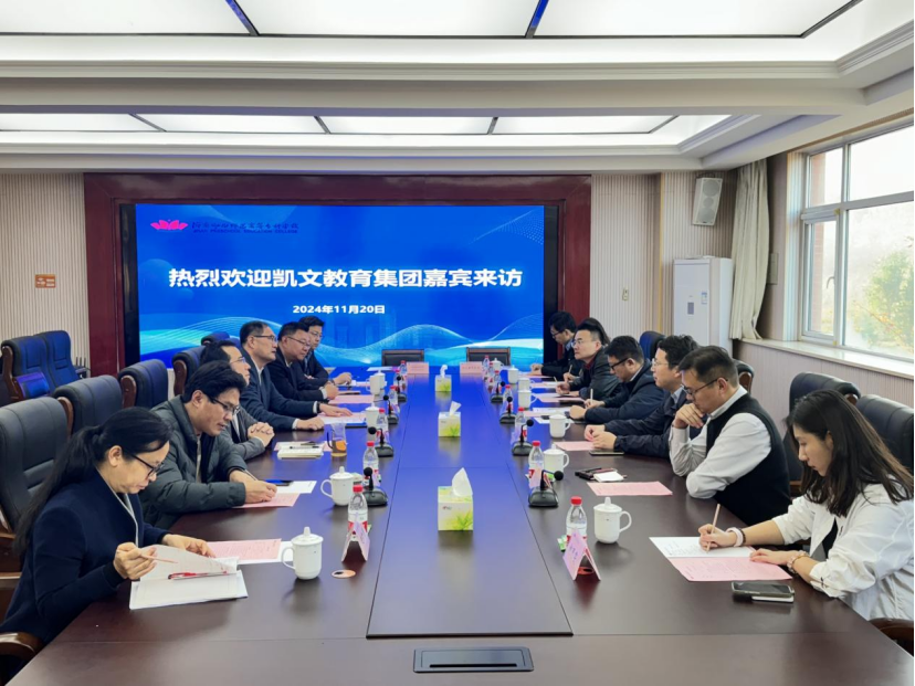 11月20日下午,北京海国投集团总经理助理、凯文教育集团董事长王腾,以及北京凯文教育集团副总经理、董事会秘书叶潇等一行共7位领导来访我校。他们首先参观了信创产业学院的生产型实训公共基地,随后校企双方在校第一会议室进行了深入交流,并成功举行了产业学院共建协议的签约仪式。本次会议由副校长崔建主持,旨在加深双方的交流合作,共同探索教育发展的新路径。