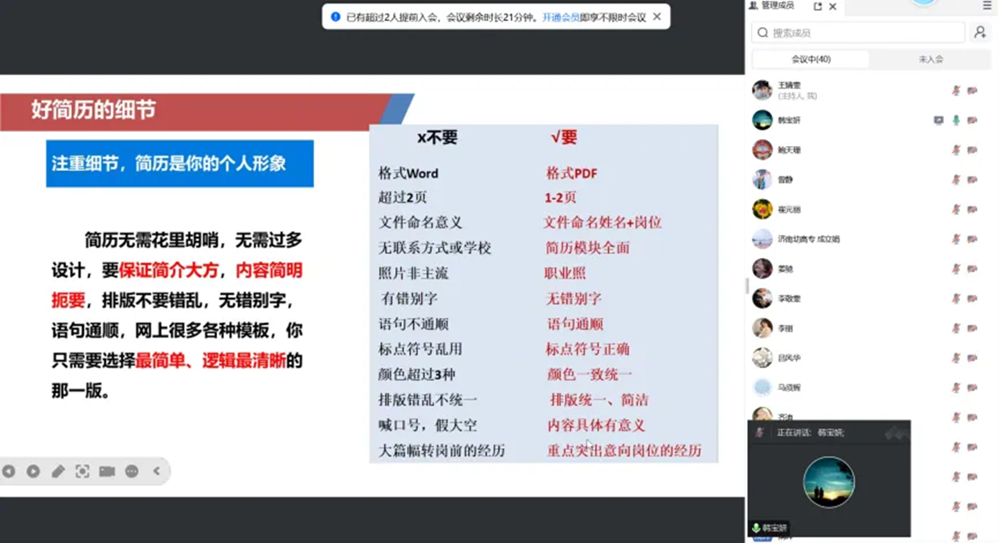 王婧雯老师对评审老师做好评审材料的报送讲明具体流程,规范了提交内容和评审标准。