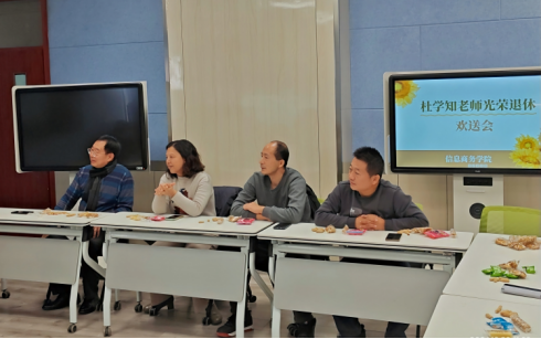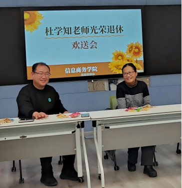立德树人满桃李,薪火相传攀大情。12月23日上午,我院在实验楼智慧实验室214举办了杜学知教授光荣退休欢送会。本次欢送会由党总支书记朱英华主持,院长赵红艳、党总支副书记王晓辉、副院长许涛以及部分新老教职工参加了此次会议,会议还特别邀请了章慧老师出席。