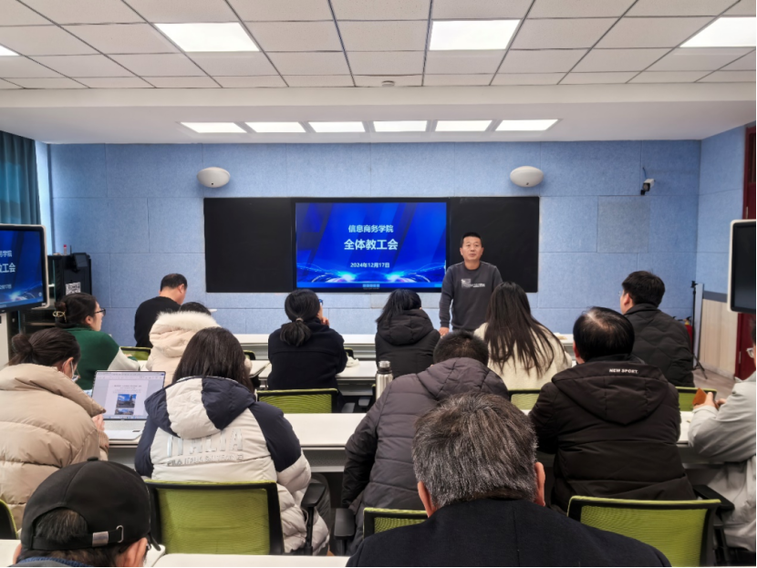 近日,信息商务学院在学院会议室举办了期末工作部署会。此次会议由学院党总支书记朱英华主持、副院长许涛传达工作精神,信息商务学院全体教师悉数出席,共同为期末工作的顺利开展进行部署和规划。