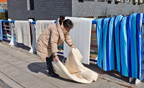 中午时分,学生宿舍区上演了另一幕温情场景:一阵突如其来的阵风将晾晒在栏杆上的被褥吹落在地。路过的几位家长见状,立即上前弯腰整理,细心拍去灰尘,重新将被褥挂起。热心家长的行为,成为校园里一道靓丽的风景线。