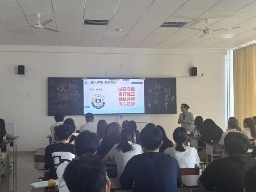 “学院是大家专业成长的‘主阵地’。”在讲解“融入学院,携手前行”时,赵红艳院长从两方面为同学们答疑解惑。一方面,她细致拆解了专业核心课程体系,清晰呈现了后续需学习的关键课程、课程间的逻辑关联,以及每门课程对应的能力培养目标,让同学们对未来的学习内容有了全面认知;另一方面,院长结合学院教学优势,鼓励同学们主动融入学院学习氛围,积极与老师、同学交流探讨,借助学院资源夯实专业基础,在互助共进中提升专业能力。