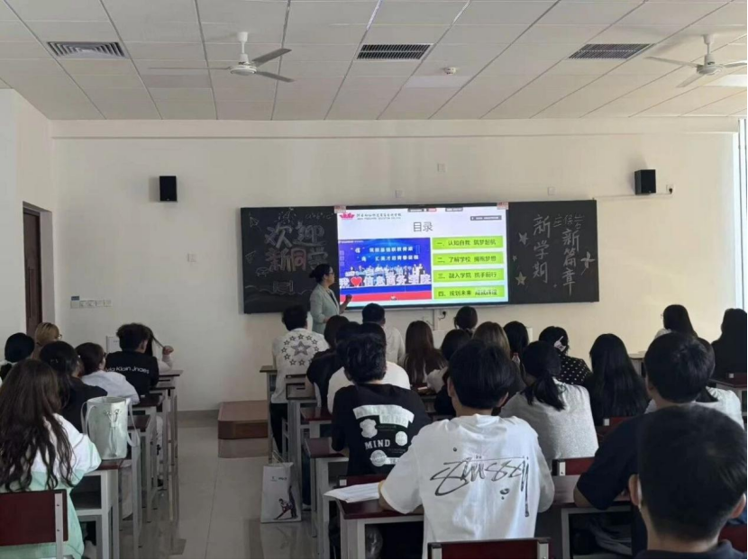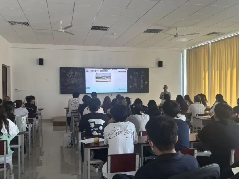 在“了解学校,拥抱梦想”环节,赵院长将专业发展与学校资源深度结合。她从专业起源讲起,梳理了专业的发展历程与演变脉络,用详实的数据和案例介绍了专业当下在行业内的地位与影响力,让同学们直观感受到所学专业的价值与潜力。同时,院长还向大家介绍了学校的办学积淀与优势资源,强调“学校为专业学习提供了坚实平台,希望同学们能充分利用这些资源,在专业领域大胆追逐梦想”,进一步激发了同学们的归属感与学习热情。