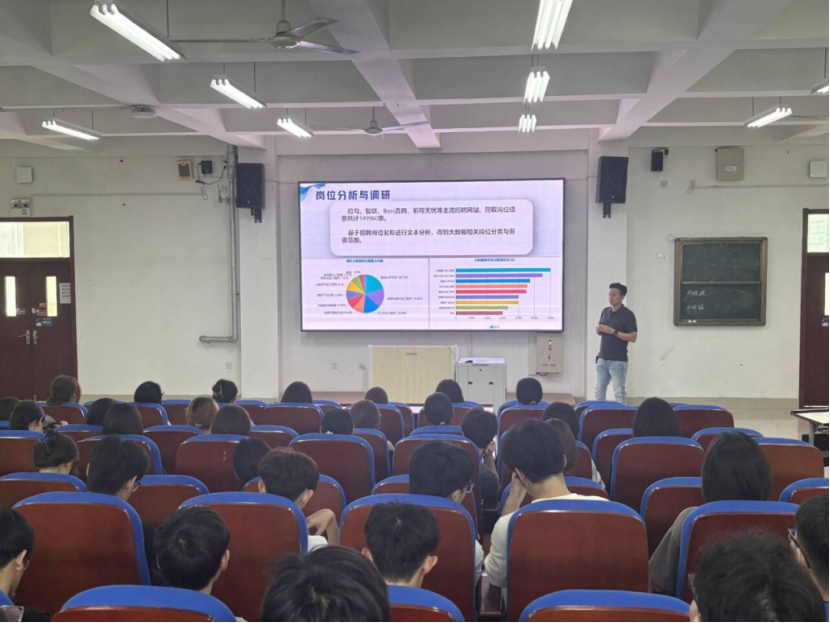 大数据技术专业负责人周文挺老师从当前数字经济时代背景出发,系统介绍了大数据技术的应用领域与发展趋势,通过详实的数据和案例,深入剖析了行业对人才的能力要求和招聘需求,明确指出了本专业毕业生所面向的职业岗位及未来发展通道。结合课程设置,对学习方法与技能培养等方面提供了具体建议,同时,强调夯实专业基础、积极参与实践的重要性。