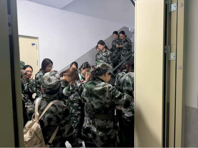 疏散完成后,辅导员老师与学生干部迅速在安全区域清点本班人数,确保无一人遗漏,并第一时间向现场负责人汇报清点结果。