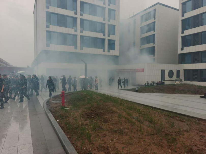 演练伊始,宿舍警铃声准时响起,模拟火灾突发场景。安保处消防人员第一时间就位,迅速展开模拟灭火行动。与此同时,4号公寓楼内全体学生严格遵循“消防应急演练预案”,立即用湿布掩住口鼻,保持弯腰姿势,沿着宿舍绿色逃生路线靠右侧快速移动,全程秩序井然,高效疏散至指定安全区域。