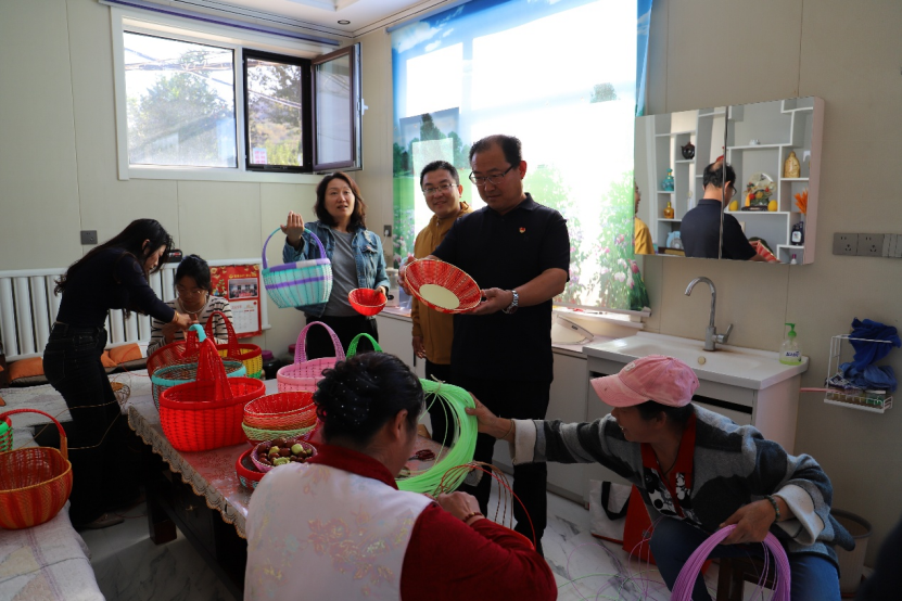 随后,一行人前往特色产业实践点考察。在编织工坊、煎饼工坊及老宅改造民宿中,观察了传统编织技艺细节、见证了祖传煎饼制作流程、近距离感受了民宿乡土韵味。并结合专业所长,围绕“传统技艺年轻化传播”“特色产业线上推广”提出思路。