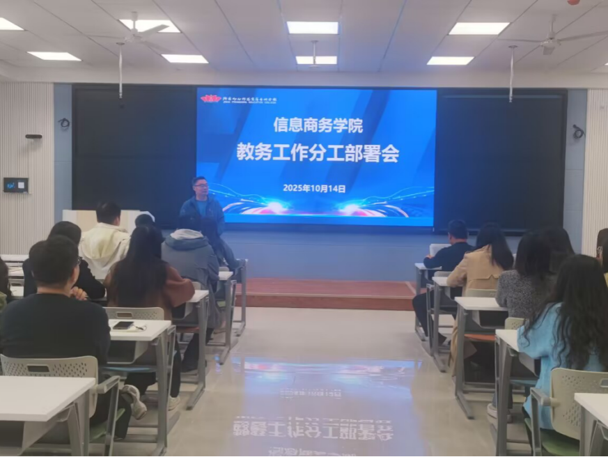2025年10月14日,信息商务学院在西部片区3113会议室召开教务工作分工部署会。系统拆解新学期教学管理任务,明确责任清单与执行路径。信息商务学院院长赵红艳、副院长宋济明、副院长许涛及全体教学管理人员参加了此次会议。会议由副院长许涛主持。