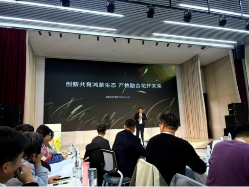 华为终端云服务人力资源部长陈敬泓指出,鸿蒙生态存在巨大人才缺口,需加强“多语言能力+鸿蒙认证+实战能力”的复合型培养。华为鸿蒙布道师马开峰则展示了鸿蒙技术在隐私安全、开发效率方面的优势,并分享了校企合作课程、认证体系与赛事资源。