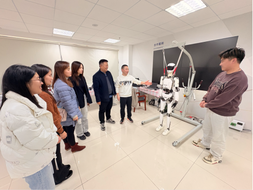 在工研院相关负责人的陪同下,李长玖老师一行重点参观了人工智能装备与系统协同创新中心及山东亚历山大智能科技有限公司等入驻机构。在技术展示区,教师们观摩了由孵化企业研发的先进人形机器人设备。技术人员现场演示了机器人的功能特性,并就其机械结构、智能控制系统及潜在应用场景进行了详细讲解。参观过程中,双方围绕智能机器人技术发展趋势、校企协同研发、人才培养供需对接等议题进行了深入探讨。