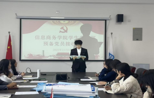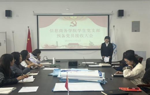 2025年11月5日,信息商务学院在3207会议室成功召开了学生党支部接收预备党员大会。会议以吸纳优秀青年力量、充实党员队伍、强化学生党支部建设为核心目标,有序推进各项议程。会议由学生党支部书记成立娟主持,支部全体党员及10名发展对象共同参会。