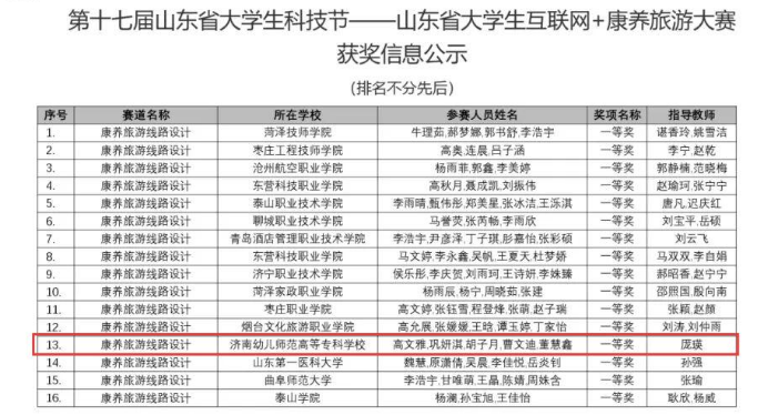 近日,第五届山东省大学生互联网+康养旅游大赛决赛圆满落幕,信息商务学院学生高文雅、巩妍淇、胡子月、曹文迪和董慧鑫在厐瑛老师的指导下凭借出色的创新能力和专业素养,在激烈竞争中脱颖而出,荣获大赛一等奖。