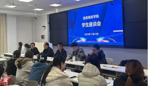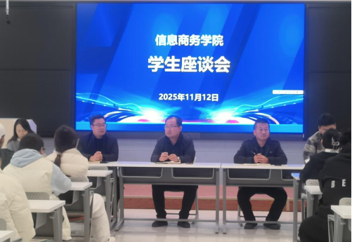 2025年11月12日,信息商务学院在西片区教学楼3113室召开全院在校生代表座谈会。学院领导班子成员、教师代表、辅导员代表及24级、25级学生代表参加本次会议。