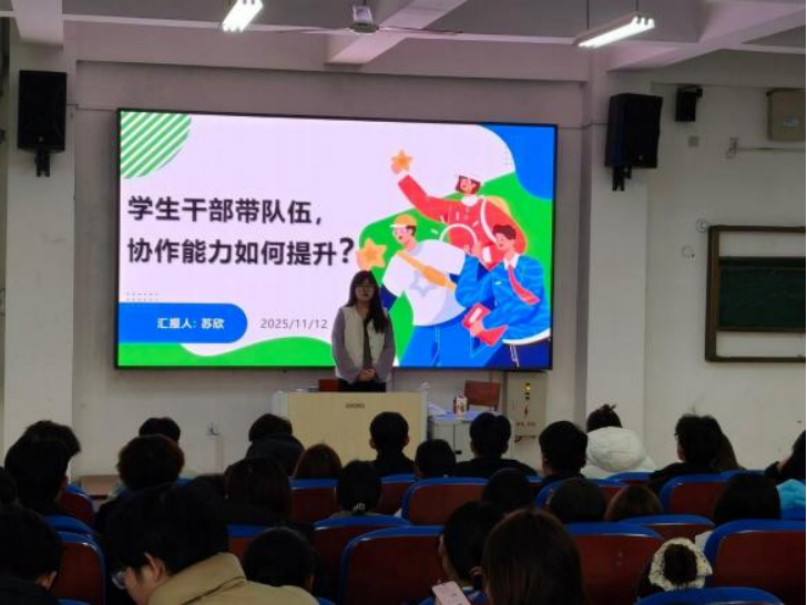 为强化学生干部队伍建设,提升团队协作水平。11月12 日中午,信息商务学院在阶梯教室十开展第五期学生干部培训课。本次培训辅导员苏欣老师以聚焦“ 提升协作能力,赋能学生干部成长”为主题,为众多学生干部带来了一场干货满满的分享。