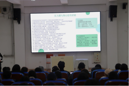 本次培训围绕“压力源识别、团队协作减压、情绪调节实操”三大模块展开:首先通过“压力信号自查问卷”,引导学生从学业、工作、人际等维度,精准定位自身压力状态,让同学们对自己的压力状态有了更清晰的了解。