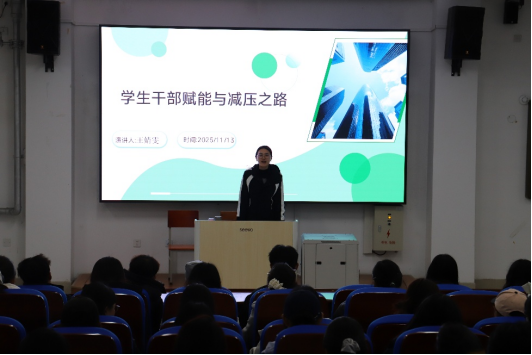 为帮助学生干部在繁忙工作中平衡状态、提升心理韧性,11月13日,信息商务学院于初等楼阶梯教室十开展第七期“领航成长营”学生干部培训课,授课老师王婧雯以“学生干部赋能与减压之路”为主题,为学生骨干带来压力识别、情绪调节与高效减压的实用方法。