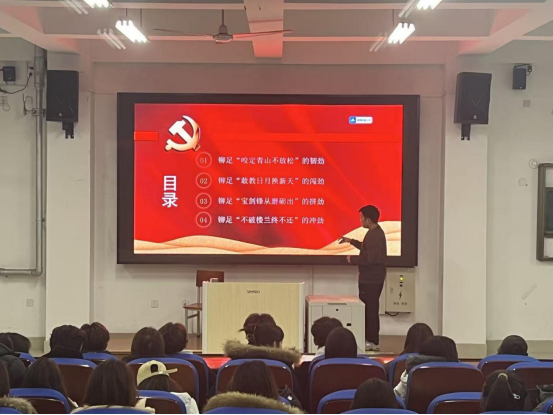 为深入学习贯彻党的二十大精神,提升信息商务学院学生干部责任意识与综合素养,11月25日,信息商务学院辅导员张振老师在阶梯教室10开展了以“铆足‘四股劲’,争做新时代好青年”为主题的专题培训课。