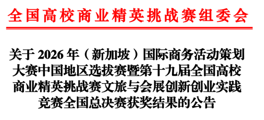 全国高校商业精英挑战赛文旅与会展创新创业实践竞赛是由中国国际贸易促进委员会商业行业委员会、中国国际商会商业行业商会等单位联合主办的国家级高水平学科竞赛,赛事以“以赛促学、以赛促教、以赛促创”为宗旨,吸引了全国数百所高校、数千支队伍同台竞技,是检验高校各专业人才培养质量与学生创新创业能力的重要平台,竞争尤为激烈。