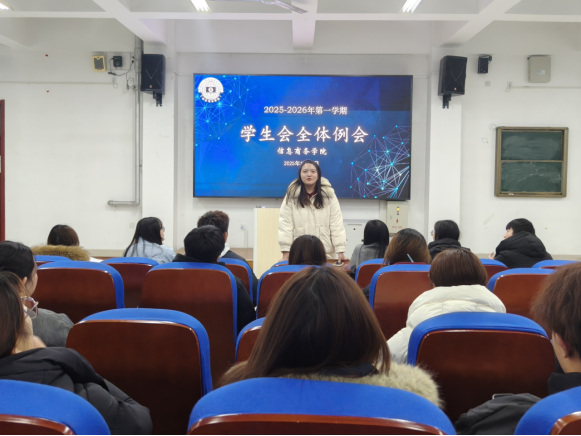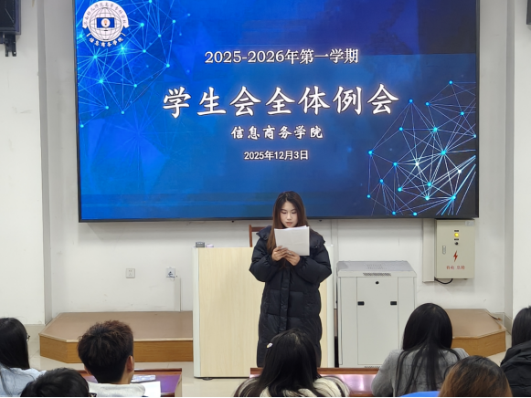 为明确新阶段工作目标、理顺分工协作机制,确保各项工作高效推进,全面提升新一届学生会成员的工作能力和责任意识,并密切各部门新成员之间的交流与合作。12月3日,信息商务学院召开2025-2026学年第一学期学生会全体例会,学生会指导老师鲍天珊和学生会全体成员共同参会。