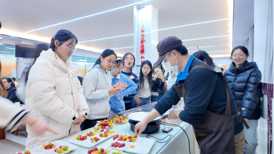 活动还创新融入“DIY糖葫芦”环节,师生自由搭配水果、创意串制,将传统小吃赋予青春色彩。信息商务学院党总支副书记王晓辉参与制作后点赞:“糖葫芦的甜蜜与饺子的热气,正是传统文化与现代生活的完美融合,让学生们在动手实践中感受文化传承的魅力。”
