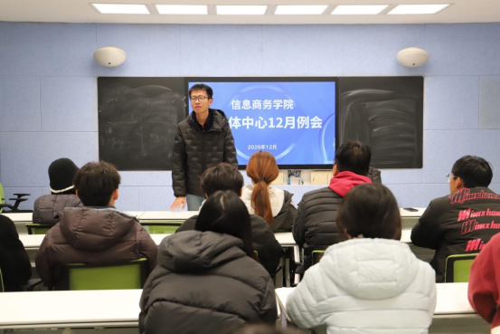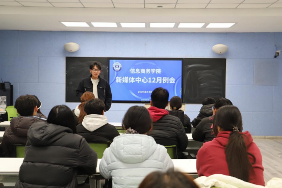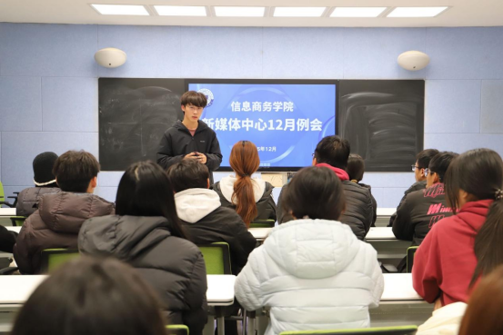 为总结过往工作经验,明确未来工作方向,12月18日,信息商务学院新媒体中心于祝晨楼214教室召开12月例会。负责老师徐苗苗、刘祥宇,新媒体中心负责人路川超、李恩泽及全体成员参与本次会议。