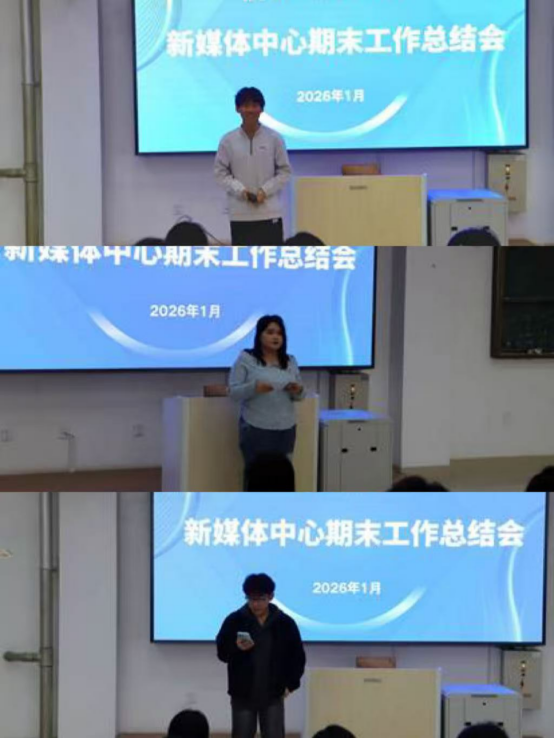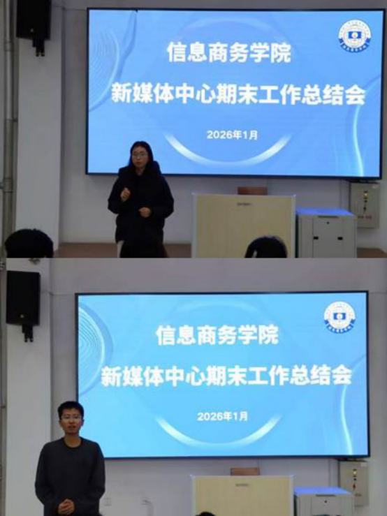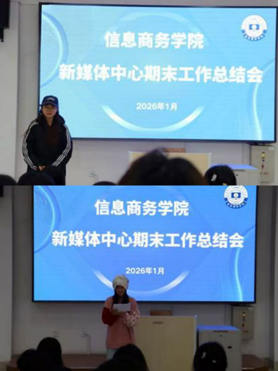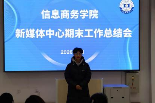 2026年1月16日,信息商务学院新媒体中心年度工作总结会在明信楼阶梯教室9顺利召开。会议由中心负责人主持,全体成员齐聚一堂,共同回顾过去一年的奋斗足迹,盘点丰硕成果,并擘画新一年的发展蓝图。