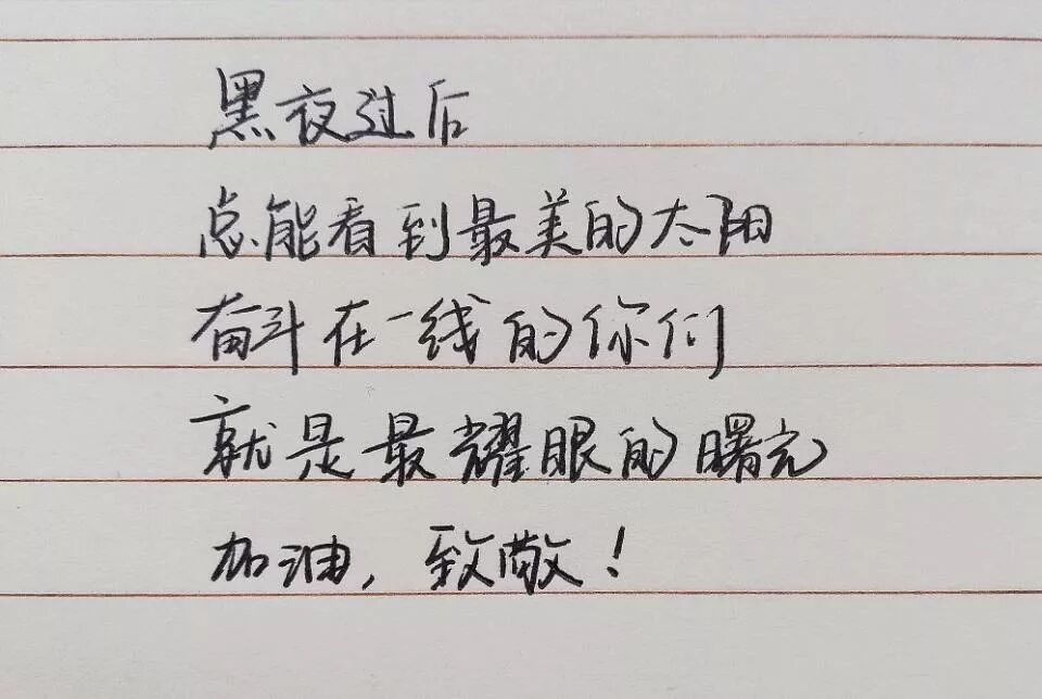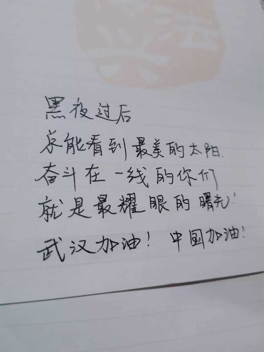 “黑夜过后,总能看到最美的太阳,奋斗在一线的你们,就是最耀眼的曙光,武汉加油!中国加油!”“待到烟消云散,拥抱春暖花开。”“背靠万家灯火,眼前是漫天的繁星。都说是岁月静好,因为你负重前行。疫情之下,大爱无边。”每一句简单的话语,表达出了学生热切的关心。