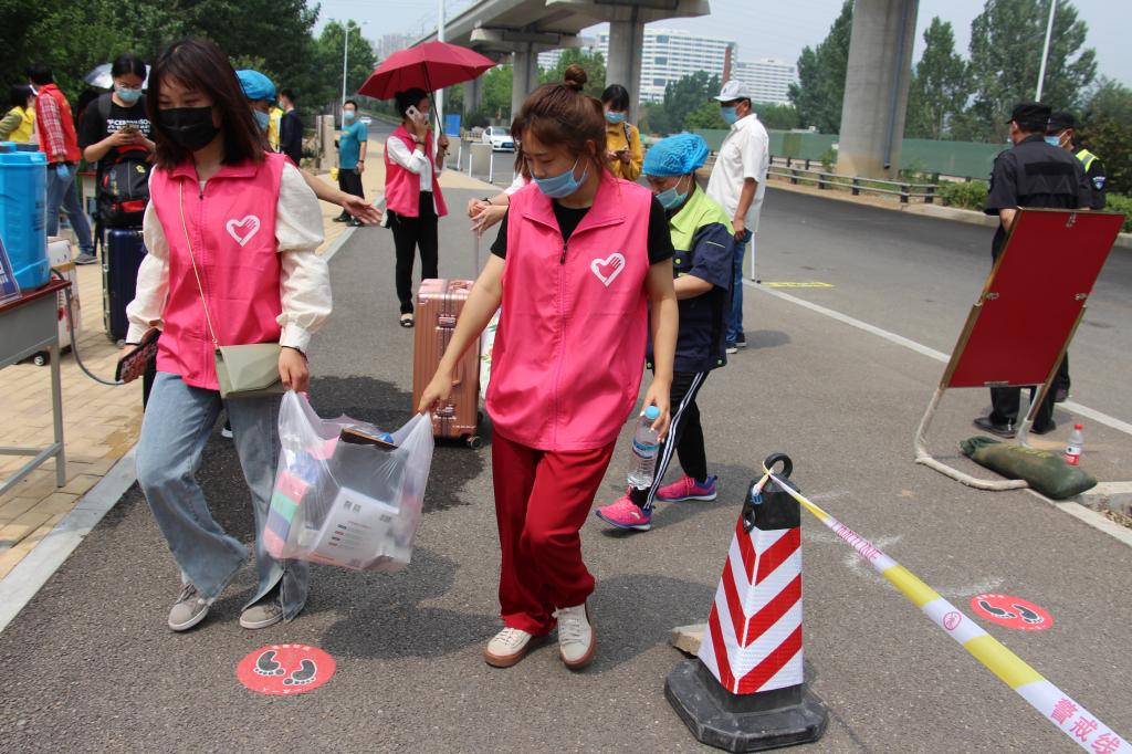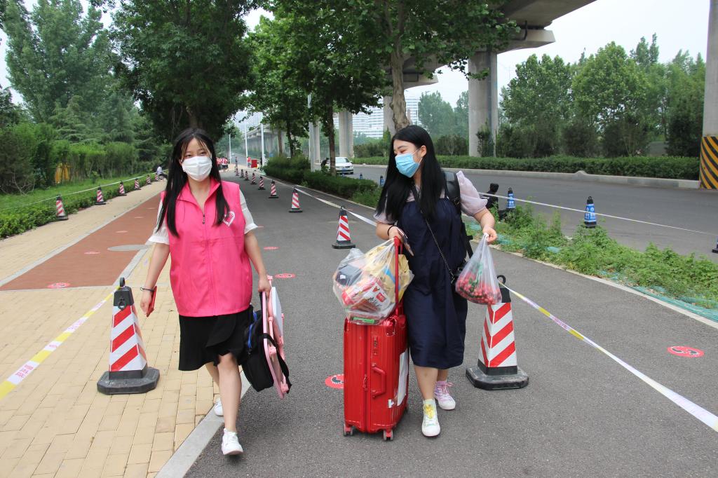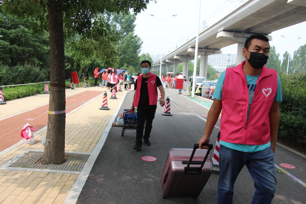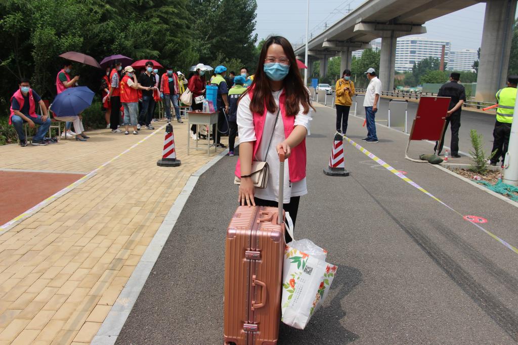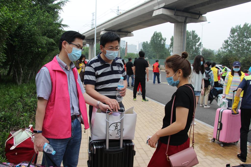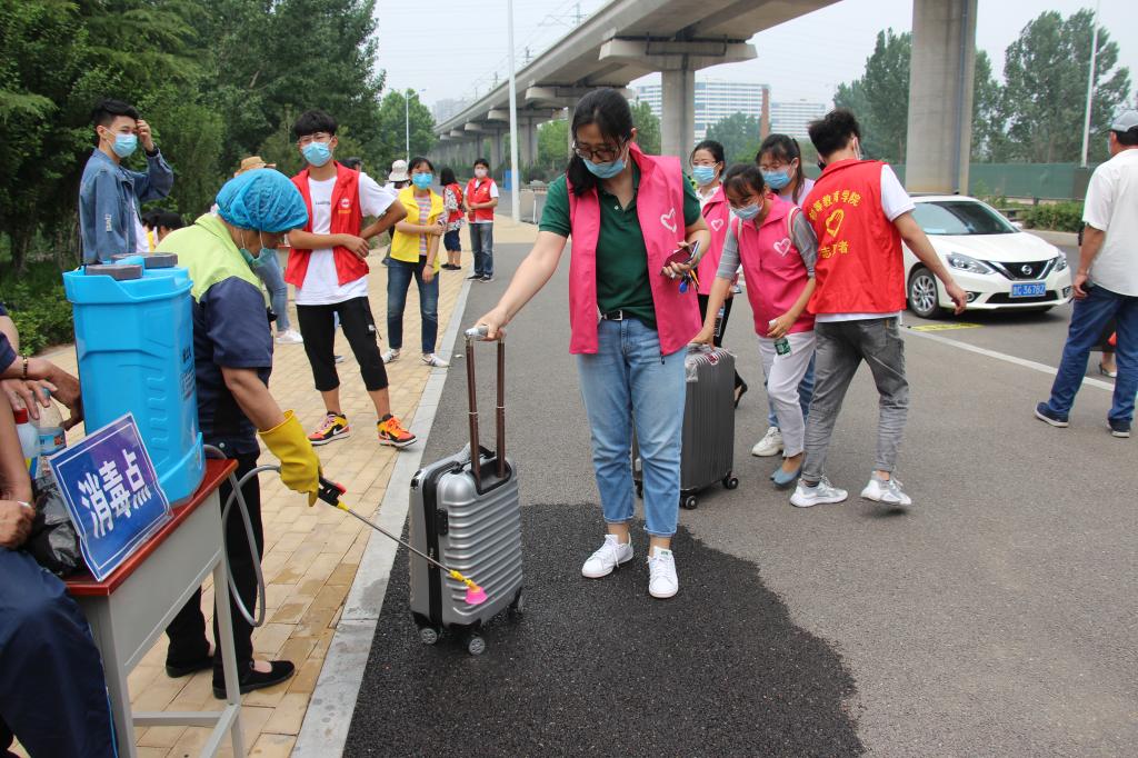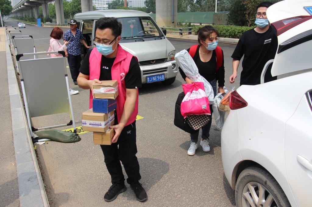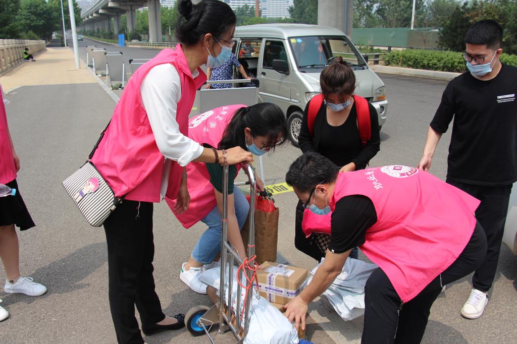 “我帮你拿着这个包。”18级金融班侯伟立同学返校后,放下行李立即自愿加入到志愿者服务队伍,协助学院老师迎接返校学生,随着返校人数的增加,18级学生段晓雪、李婷婷、刘爽、葛庆凤等人也纷纷加入到志愿者队伍中,帮助返校学生运送行李。